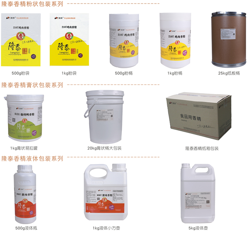 “隆泰”咸味香精系列產(chǎn)品,有粉狀(拌合型、噴霧干燥型、微波干燥型)、膏狀和液體(水溶性、油溶性)三種劑型,包括雞肉香精、豬肉香精、牛肉香精、爆烤鴨香精、羊肉香精、海鮮類香精、蔬菜類香精、麻辣風(fēng)味香精等系列產(chǎn)品,產(chǎn)品主要應(yīng)用于肉制品、方便面、方便粉絲、雞精、膨化休閑食品、復(fù)合調(diào)味品、速凍食品等多個(gè)行業(yè)領(lǐng)域。